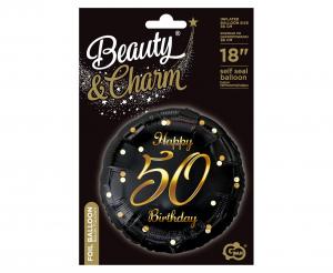B&C Happy 50 Birthday balon od folije, crni, zlatni print, 18″