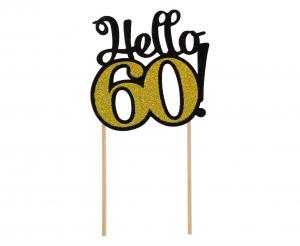 PAPIRNA DEKORACIJA B&C 60. ROĐENDANSKA TORTA Visina: 19 Širina: 10 Dizajn: “Pozdrav 60!” Boja: crna, zlatni glitter Materijal: papir, drvo (štapići) Kolekcija: Ljepota i šarm Proizvođač: Godan