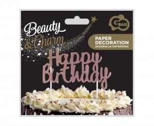 PAPIRNA DEKORACIJA TORTA ZA ROĐENDAN Visina: 14 Širina: 11 Dizajn: natpis “Sretan rođendan”. Boja: rose gold, glitter Materijal: papir Kolekcija: Beauty&Charm Proizvođač: Godan S.A
